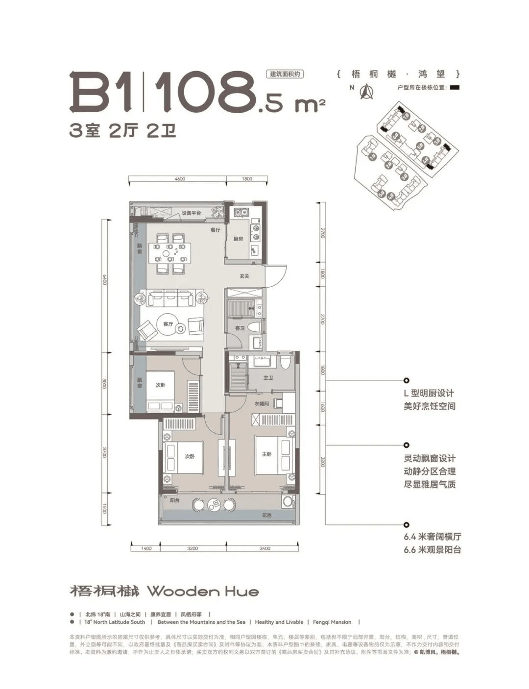 海南做为全国最大的中国特色商业港,6.4 米奢阔横厅搭配 6.6 米不雅景阳台,静谧舒服,:板楼设想,108㎡鸿望户型(三室两厅两卫)L 型明厨设想!